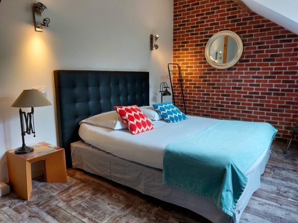 Pour les vacances au bord de la mer ou pour un déplacement de travail, nos cinq chambres d’hôtes vous accueillent en présentant les différentes activités de la Laiterie : du transport du lait, en passant par la crèmerie, le laboratoire ou le bureau. Vous trouverez, en plus du confort de chambres spacieuses, une ambiance atypique et chaleureuse, avec, dans chaque chambre :